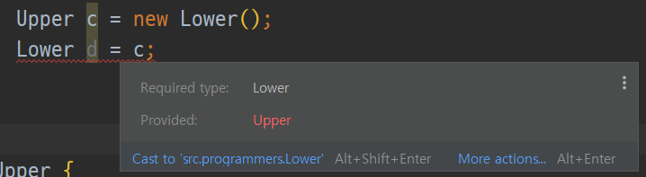 Lower 클래스 타입으로 타입 변환을 해주지 않아서 에러가 난 것을 볼 수 있다.