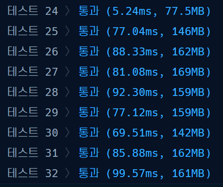테스트 25부터 시간이 오래 걸리고, ArrayList로 통과한 것을 보니,