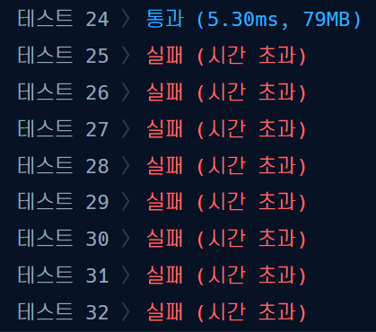 논리적인 흐름은 다 맞는 것 같은데 시간 초과가 났다.